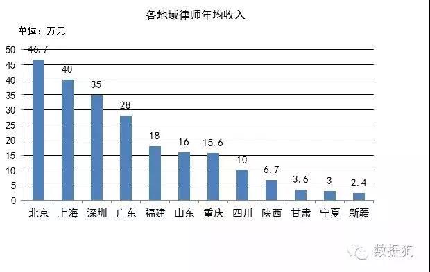 從以上數(shù)據(jù)可以看出,律師收入最高的城市是北京、深圳要賬公司律師和上海這些經(jīng)濟(jì)比較發(fā)達(dá)的一線城市,而二線城市包括福建山東江蘇等城市律師的收入雖然不是很高但總體差別不是很大。對(duì)比一線城市而言,我國(guó)的西部地區(qū)例如陜西、甘肅、寧夏、新疆等律師的年收入很低。
